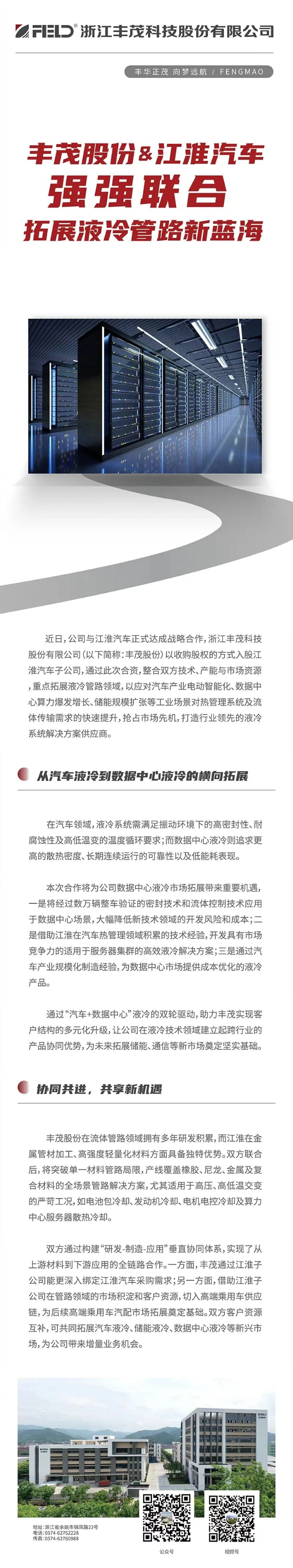 丰茂股份与江淮汽车强强联合,拓展液冷管路新蓝海 ID010 来源: 本网编辑 2025年9月19日 16:03 阅读(1112) 评论(0) 风险提示:股市有风险,投资需谨慎,以上内容仅供投资者参考,不作为投资决策的依据。转载请注明出处: http://www.ipo123.com.cn/archives/63978 标签:丰茂股份