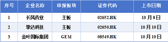 10月5日至10月11日期间,长风药业、挚达科技、金叶国际集团3家企业挂牌上市。