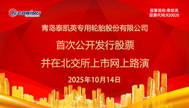 欢迎大家参加青岛泰凯英专用轮胎股份有限公司向不特定合格投资者公开发行股票并在北交所上市的网上路演推介活动。我谨代表泰凯英全体员工,对大家的积极参与表示热烈的欢迎和衷心的感谢!