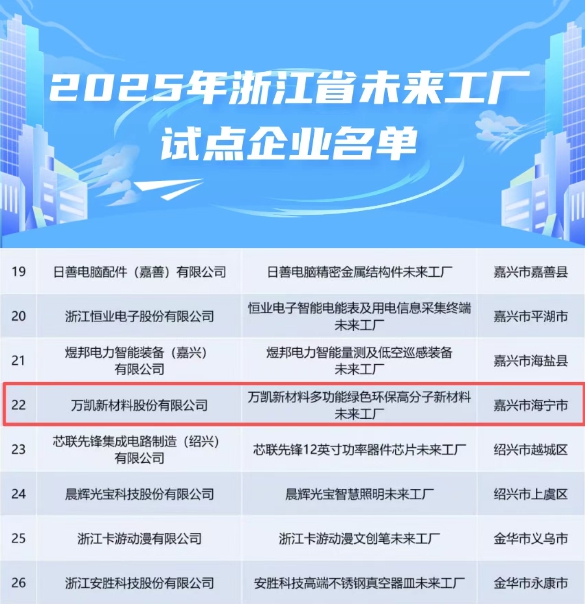 喜报 | 热烈祝贺万凯新材入选2025年浙江省未来工厂试点企业名单