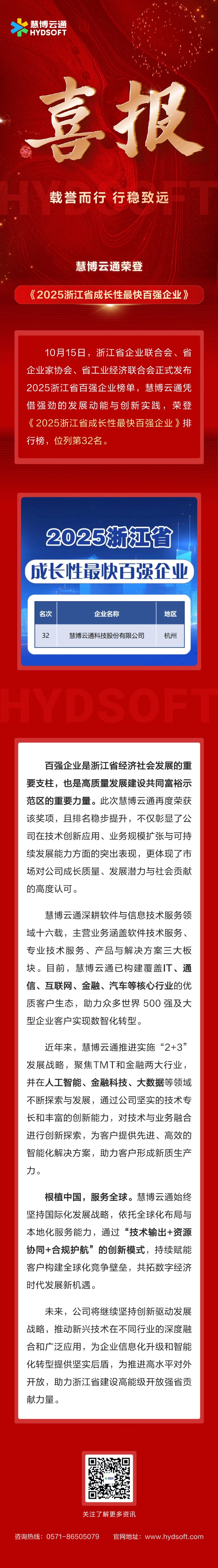 喜报!慧博云通再获2025浙江省成长性最快百强企业 ID010 来源: 慧博云通 2025年10月16日 15:02 阅读(743) 评论(0) 本文来自网络,不代表中经互联-上市公司网立场。转载请注明出处: http://www.ipo123.com.cn/archives/65493 标签:慧博云通