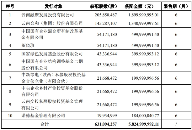 据公开资料显示,华能水电本次发行对象共10名,发行对象所认购的本次向特定对象发行的股票自发行结束之日起6个月内不得转让。公司本次发行募集资金总额5,824,999,992.11元,募集资金净额为5,803,125,714.35元。