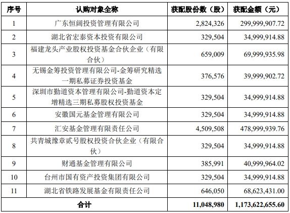 据公开资料显示,奕瑞科技本次发行对象共11名,发行对象认购的本次发行的股票自发行结束之日起6个月内不得转让。公司本次发行募集资金总额1,173,622,655.60元,募集资金净额为1,159,876,939.63元。