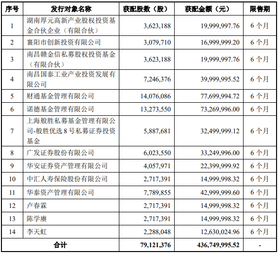 据公开资料显示,兄弟科技本次发行的最终获配发行对象共计14家,本次发行对象认购的股份自发行结束之日起6个月内不得转让,限售期从新增股份上市首日起算,法律法规另有规定的从其规定。公司本次发行募集资金总额436,749,995.52元,募集资金净额为428,248,784.36元。