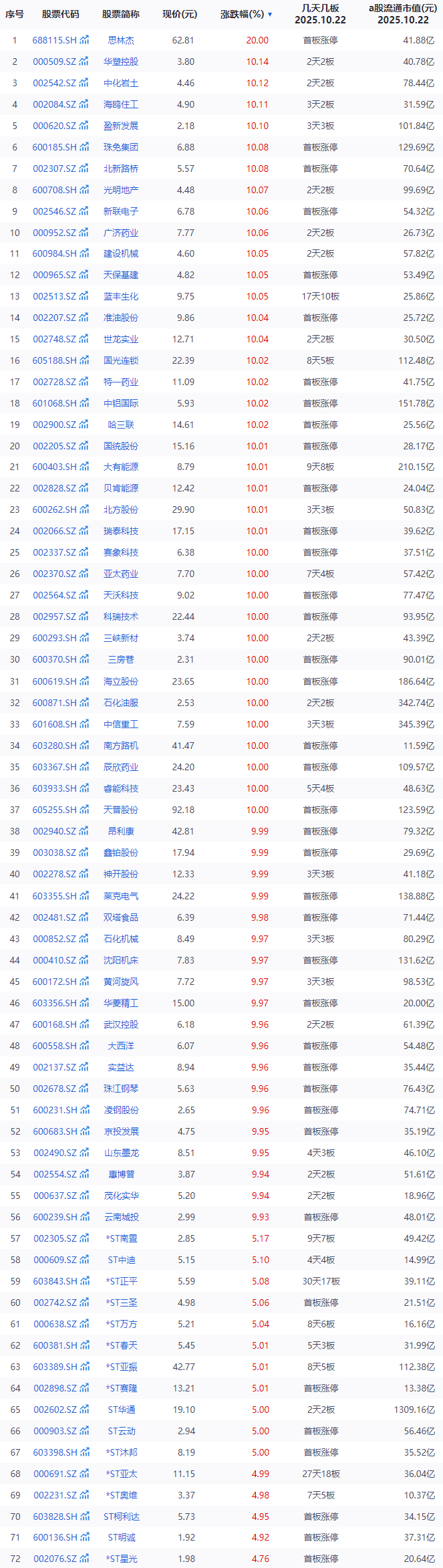 今日涨停个股