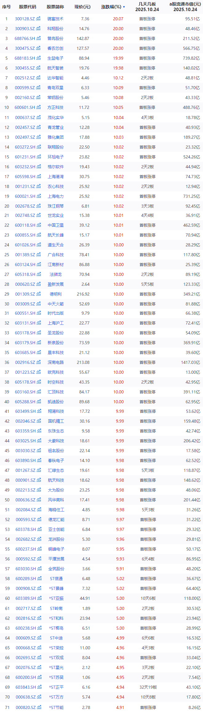 今日涨停个股