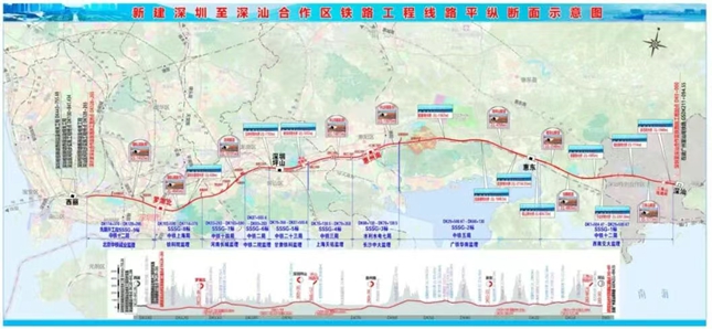深汕高铁于2021年1月开工,桥隧比高达92.6%,目前处于盾构施工等关键阶段。建成后,自深圳出发,经深汕高铁1小时即可达粤东城市群、2小时可达海西城市群、5小时通达长三角城市群,对加快构建沿海高速铁路,优化深圳枢纽对外铁路通道,推进深汕特别合作区建设具有重要作用。