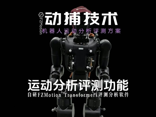 FZMotion动捕系统作为机器人运动性能评测的核心工具,承担整机性能评估、核心零部件验证与关键运动数据分析任务,通过实时捕捉机器人关节角度、运动轨迹等数据,将关节角度误差控制在0.1°以内,末端执行器精度可达亚毫米级,支持多目标并行追踪,来全面评估机器人的步态稳定性、姿态控制与操作精度,从足部贴合度到关节角度,从头部晃动到抓取姿态,每一个细节都转化为可量化的数据指标,结合自研的FZMotion Transformers评测分析软件,仅需15分钟可完成160+项测试,为运动控制算法优化、机械结构改进、出厂质量评估提供高质量数据支撑,推动建立机器人检测与性能评估标准。