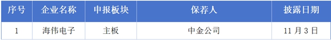 11月2日至11月8日期间,海伟电子通过聆讯。