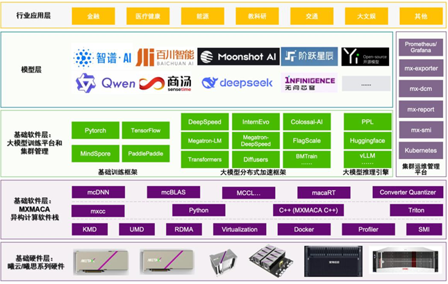 这一成绩的取得,源于公司对自主创新道路的坚定践行。面对我国算力基础设施长期依赖海外巨头的现状,沐曦股份通过持续高强度研发投入,在高性能GPU芯片设计、先进封装技术、高速互连通信等领域取得重大突破。其曦云C系列芯片不仅实现对FP8、FP4等低精度数据格式的支持,更通过MetaXLink互连技术与光互连技术的融合创新,有效突破传统服务器架构的通信瓶颈。在软件生态层面,公司打造的MXMACA软件栈通过开源共享策略,正逐步解决跨GPU平台的应用兼容难题,构建起自主开放的开发者社区生态,为国产GPU生态繁荣奠定坚实基础。