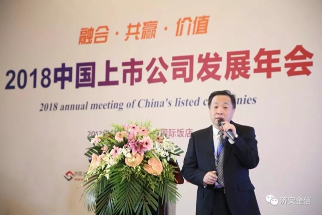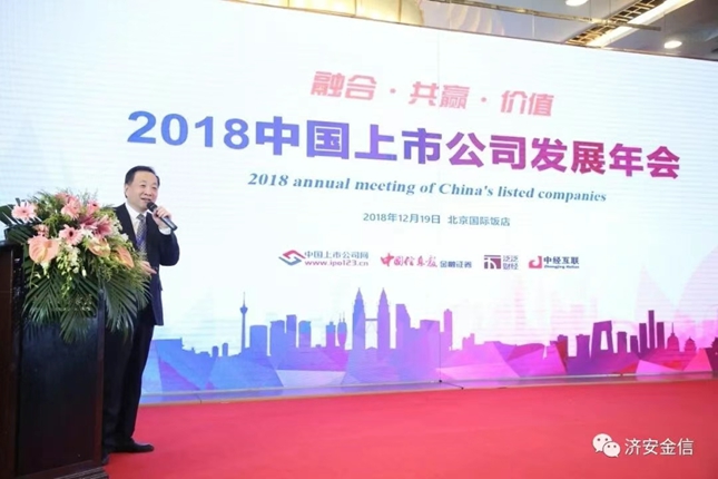 2018年12月19日上午,由中国上市公司网、中国信息报金融证券部主办的2018中国上市公司发展年会在北京国际饭店国际厅隆重举行。此次年会聚集上市公司围绕“融合、共赢、价值”这一主题展开研讨。通过探究与讨论,确立新时代上市公司发展的具体行动方向,促进上市公司强强联手、合作共赢,提升上市公司整体质量和治理水平,用良好的业绩实现客户、员工、合作伙伴和广大投资者各得其所。