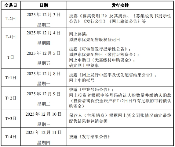 中国上市公司网讯 12月3日,普联软件股份有限公司(证券代码:300996,证券简称:普联软件)披露了向不特定对象发行可转换公司债券发行公告,公司具体的发行安排如下表所示: