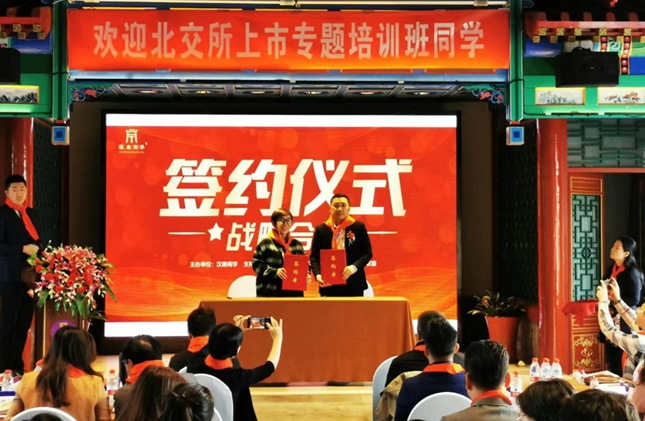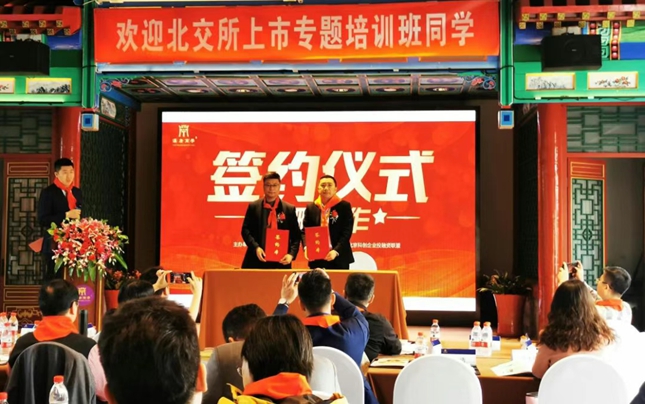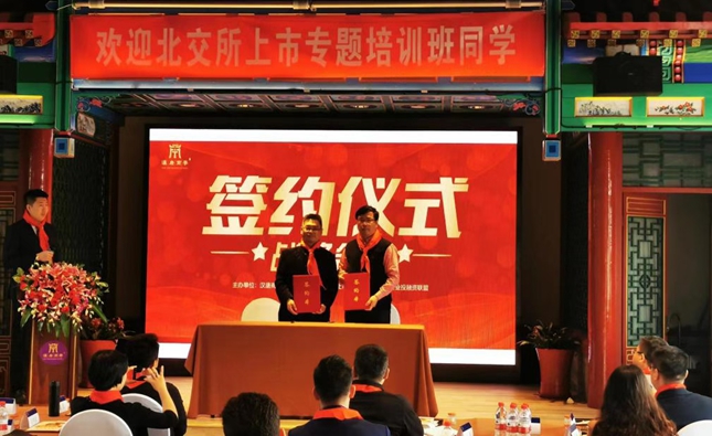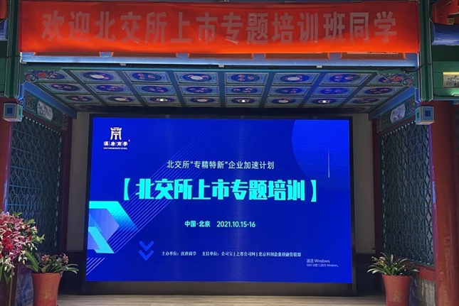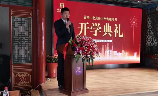 2021年10月15日上午,由公司宝商学主办,汉唐集团、上市公司网、北京科创企业投融资联盟支持承办的北交所上市专题培训(第一期)开班典礼在朗丽兹太和府来鹤轩会议室顺利举办。