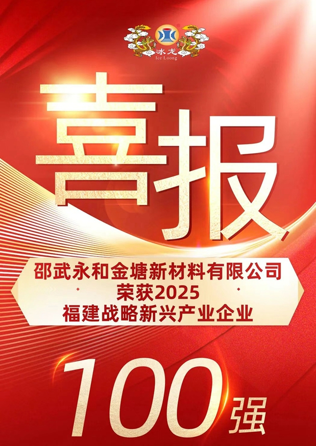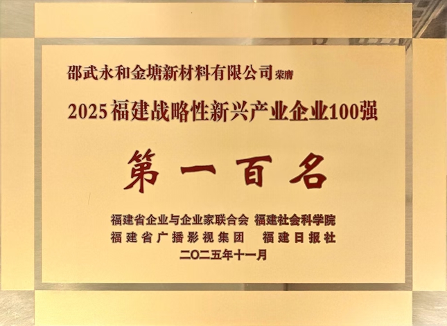 邵武永和金塘新材料有限公司凭借稳健增长的经营业绩、突出的自主创新能力与深厚的产业积淀荣登“福建战略新兴产业企业100强” 榜单。