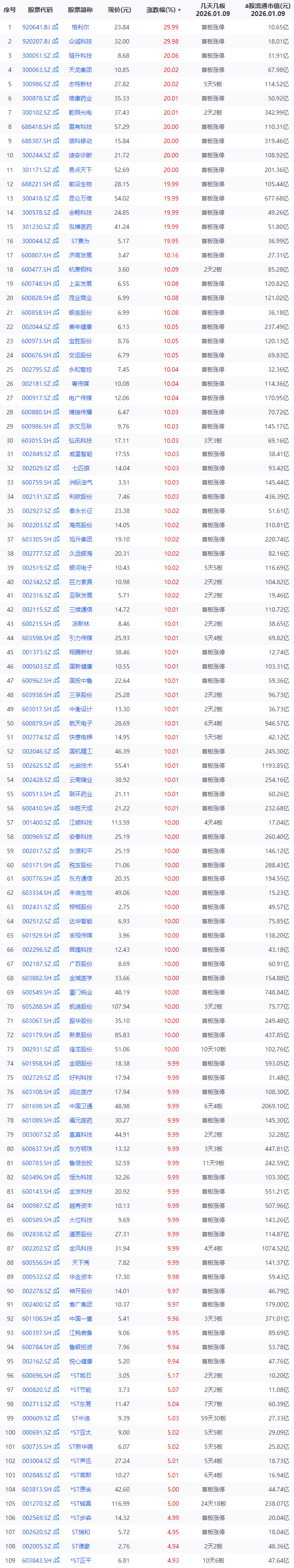 指数样本调整生效:1月9日收市后,中证500、中证1000、中证A500等指数样本调整正式实施。芯源微调入中证500,华大智造调入中证A500,明月镜片调入中证1000;ST类绩差股被批量调出,超5000亿元跟踪资金将被动流入优质标的,市场“优进劣出”生态进一步完善今日头条。
