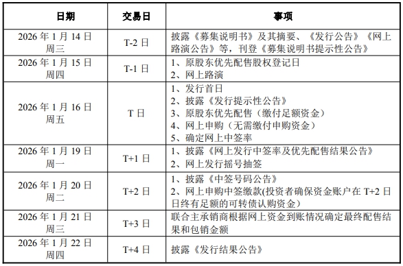 中国上市公司网讯 1月14日,石家庄尚太科技股份有限公司(证券代码:001301,证券简称:尚太科技)披露了向不特定对象发行可转换公司债券发行公告,公司具体的发行安排如下表所示: