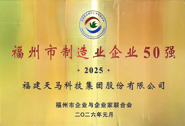 天马科技讯 近日,福州市企业与企业家联合会隆重发布“2025福州市制造业50强”榜单。天马科技集团凭借卓越的经营成果和强劲的生产制造实力,荣膺“2025福州市制造业企业50强”。