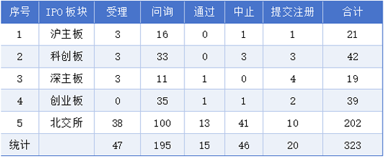 截至1月25日,IPO排队企业323家,其中沪主板排队企业21家,科创板排队企业42家,深主板排队企业19家,创业板排队企业39家,北交所排队企业202家。