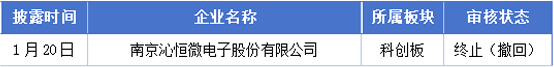 1月19日至1月25日期间,南京沁恒微电子股份有限公司终止(撤回)了IPO。