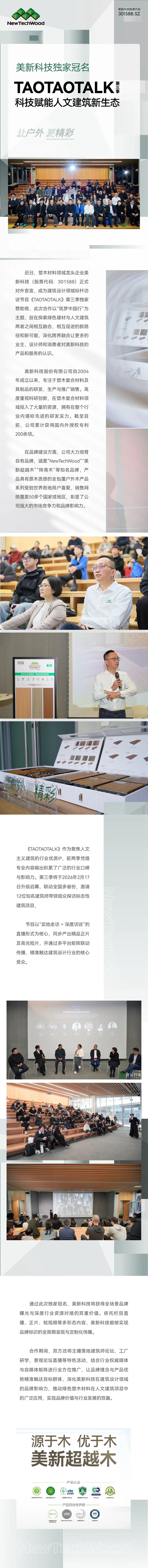 美新科技独家冠名TAOTAOTALK第三季,科技赋能人文建筑新生态 ID010 来源: 美新超越木 NewTechWood美新超越木 2026年2月5日 11:36 阅读(828) 评论(0) 风险提示:股市有风险,投资需谨慎,以上内容仅供投资者参考,不作为投资决策的依据。转载请注明出处: http://www.ipo123.com.cn/archives/73921 标签:美新科技 TAOTAOTALK