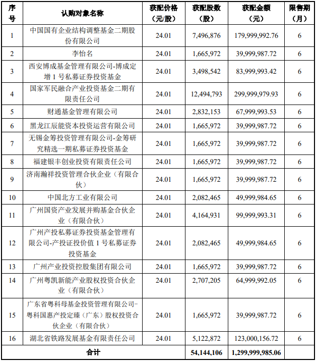 据公开资料显示,广电计量本次发行对象最终确定为16名。根据中国证监会、深圳证券交易所的有关规定,本次向特定对象发行的股份,自上市之日起六个月内不得转让,自2026年2月12日起开始计算。公司本次发行募集资金总额1,299,999,985.06元,募集资金净额为1,292,316,311.94元。