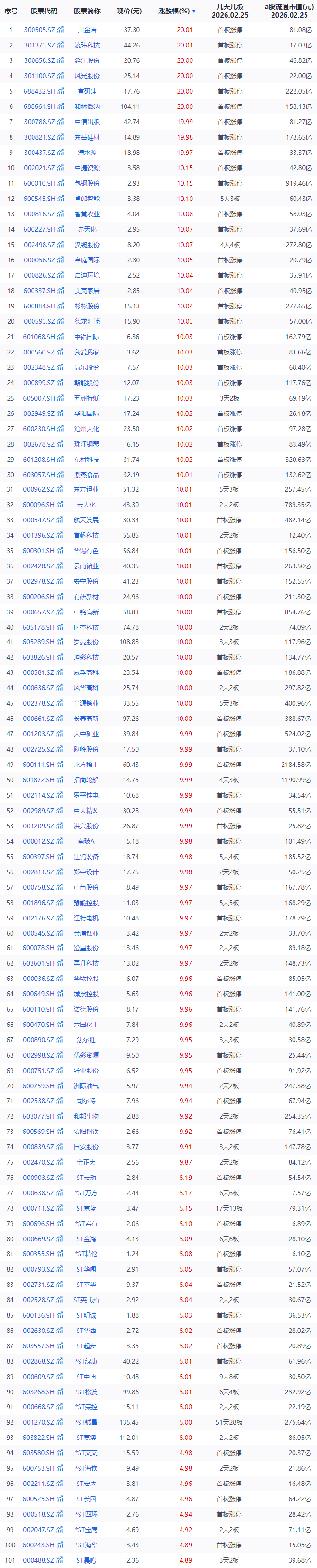 板块题材上,小金属、磷化工、钢铁、稀土永磁、电池、PCB、房地产、PET铜箔、港口航运板块涨幅居前;影视院线、银行、算力租赁、游戏板块跌幅居前。