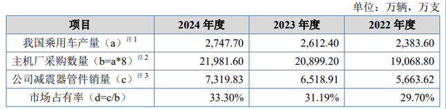 永励精密在汽车精密钢管细分领域具备绝对的龙头地位,尤其在减震器管件赛道,市场占有率持续稳居国内前列,形成了显著的规模优势与行业话语权。报告期内(2022-2024年),公司汽车减震器管件在全国整车配套市场的占有率分别达到29.70%、31.19%、33.30%,稳中有升,成为国内减震器管件领域的“隐形冠军”,远超同行业竞争对手,具备极强的市场竞争力。