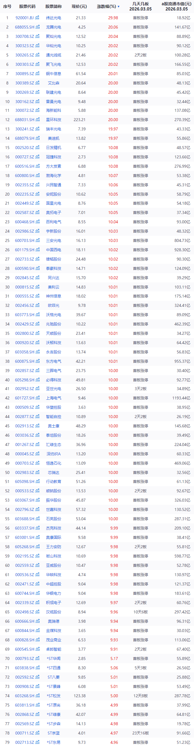 盘面上,光学光电子、MicroLED概念股集体大涨,雷曼光电、瑞丰光电、联建光电等20余股涨停,机构称MicroLEDCPO有望凭节能优势成为光互连替代方案。受益于AI浪潮,电网设备维持近期涨势,汉缆股份、通光线缆等股收获2连板。受重要会议催化影响,量子科技、教育、脑机接口等板块盘中均有拉升。另一方面,伊朗军方高官称未封锁霍尔木兹海峡,石油天然气、粮食、港口航运板块多数回调,康农种业、贝肯能源跌幅居前。