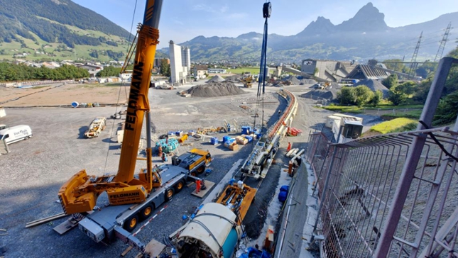 设备开挖直径3.85米,整机长度约110米,总装机功率约1700千瓦,并按照瑞士标准针对性配置了法向锚杆钻机、喷混系统、拱架及超前钻探装置,具备锚网喷全套支护功能,同时配置了紧急避难仓等安全设施。TBM施工中快速顺利通过涌水地层,通过管棚支护零沉降成功下穿既有运行铁路隧道,设备性能和专业服务获得了业主与客户的一致好评。