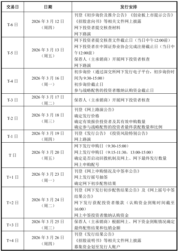 慧谷新材IPO发行安排 ID010 来源: 本网编辑 2026年3月12日 11:08 阅读(1001) 评论(0) 中国上市公司网讯 3月12日,广州慧谷新材料科技股份有限公司披露了首次公开发行股票发行安排及初步询价公告,公司具体的发行安排如下表所示: 中国上市公司网讯 3月12日,广州慧谷新材料科技股份有限公司披露了首次公开发行股票发行安排及初步询价公告,公司具体的发行安排如下表所示: 风险提示:股市有风险,投资需谨慎,以上内容仅供投资者参考,不作为投资决策的依据。转载请注明出处: http://www.ipo123.com.cn/archives/75547 标签:慧谷新材 IPO 发行安排