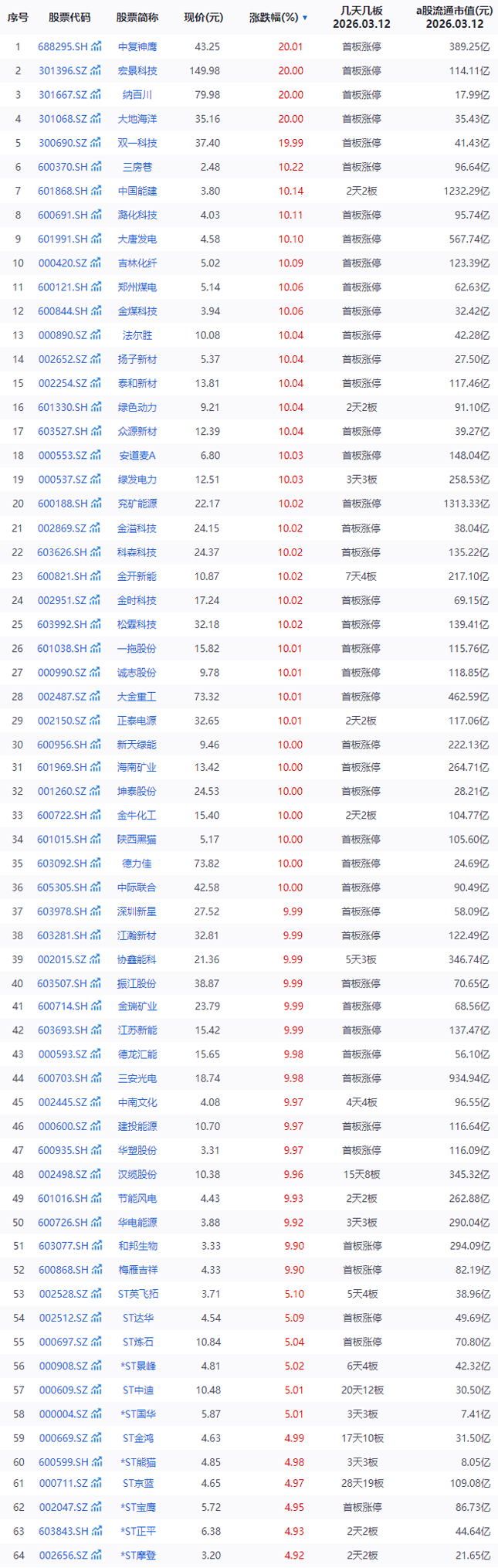 【3连板】绿发电力、华电能源。