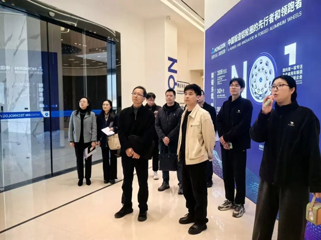 上午10:00,校方一行抵达公司,在公司相关负责人的陪同下,首先参观了企业展厅。通过产品展示与技术讲解,来访一行直观了解了宏鑫科技在轮毂制造领域的核心技术与产品实力,进一步加深了对公司发展理念与行业定位的认知。