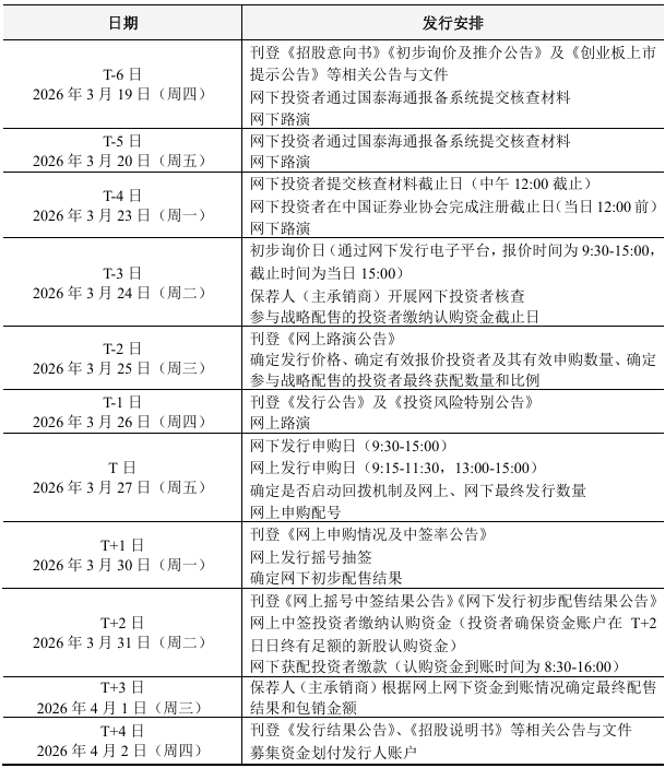 三瑞智能IPO发行安排 ID010 来源: 本网编辑 2026年3月19日 9:32 阅读(887) 评论(0) 中国上市公司网讯 3月19日,南昌三瑞智能科技股份有限公司披露了首次公开发行股票发行安排及初步询价公告,公司具体的发行安排如下表所示: 中国上市公司网讯 3月19日,南昌三瑞智能科技股份有限公司披露了首次公开发行股票发行安排及初步询价公告,公司具体的发行安排如下表所示: 风险提示:股市有风险,投资需谨慎,以上内容仅供投资者参考,不作为投资决策的依据。转载请注明出处: http://www.ipo123.com.cn/archives/75942 标签:三瑞智能 IPO 发行安排