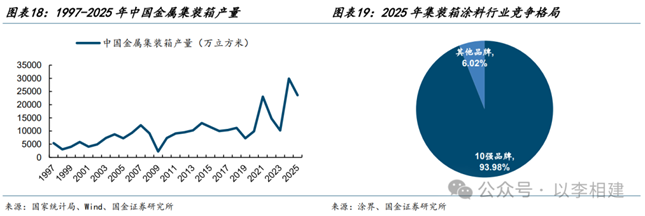 船舶涂料:根据涂界,2024年全球/中国市场约450/115亿元,外资占主导。公司2025年完成三大船级社认证,25Q2起承接境内外修补漆订单,短时间内实现0-1突破,与集装箱业务的深度协同正加速推动市场突围。