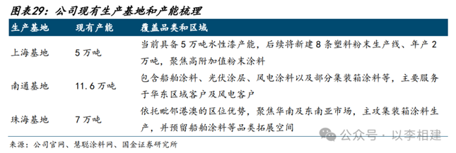 以及上海工厂5万吨水性涂料的补充(后续拟改建为2万吨粉末涂料)。