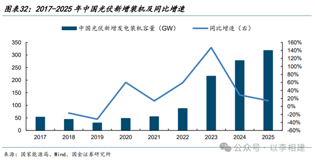 政策层面,2025年2月《国家重点推广的低碳技术目录(第五批)》公布,有助于提高发电效率、获得减碳效益的光伏玻璃自清洁纳米涂层技术,位列于第一类能源绿色低碳转型类的第14项,获得政策支持。2025年中国光伏新增装机318GW,同比+14%,全球光伏装机量的持续扩容,将带动光伏涂料及相关材料的需求增长。
