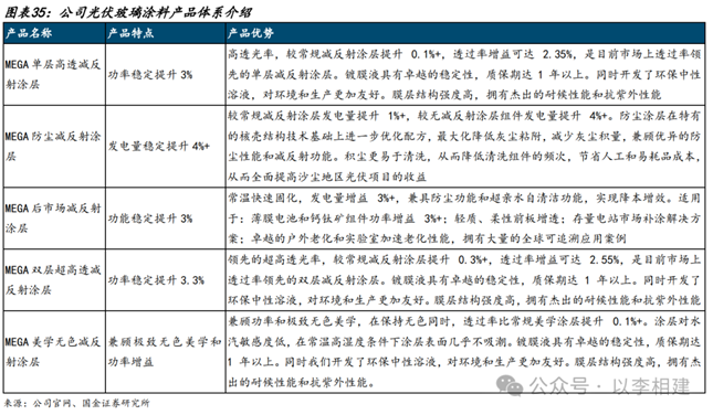光伏涂料作为高附加值的关键辅材,包括面板涂层(减反射涂层、自清洁涂层)、边框涂料、支架涂料、背板涂层、导电涂料等品类,当前其应用已从基础的防护延伸至核心的增效环节。例如在荒漠、水面等苛刻环境下,光伏面板增透与自清洁涂层通过抗反射(AR)及防尘技术,显著提升透光率、减少积灰损失,成为电站提升发电效率的关键手段;支架重防腐涂层与边框耐候涂料则有效抵御盐雾、风沙及紫外线侵蚀,保障组件全生命周期安全。