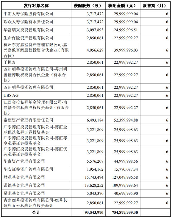 据公开资料显示,哈尔斯本次发行最终获配发行对象共计20名。本次发行完成后,发行对象认购的股份自本次发行完成上市之日起6个月内不得转让,自2026年4月3日(上市首日)起开始计算。公司本次发行募集资金总额754,899,999.30元,募集资金净额为743,031,230.92元。