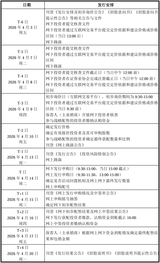 联讯仪器IPO发行安排 ID010 来源: 本网编辑 2026年4月3日 9:48 阅读(906) 评论(0) 中国上市公司网讯 4月3日,苏州联讯仪器股份有限公司披露了首次公开发行股票发行安排及初步询价公告,公司具体的发行安排如下表所示: 中国上市公司网讯 4月3日,苏州联讯仪器股份有限公司披露了首次公开发行股票发行安排及初步询价公告,公司具体的发行安排如下表所示: 风险提示:股市有风险,投资需谨慎,以上内容仅供投资者参考,不作为投资决策的依据。转载请注明出处: http://www.ipo123.com.cn/archives/77123 标签:联讯仪器 IPO 发行安排
