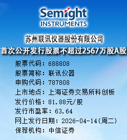 中国上市公司网讯 4月14日,苏州联讯仪器股份有限公司(以下简称“联讯仪器”或公司)申购。公司的股票简称为“联讯仪器”,扩位简称为“联讯仪器”,股票代码为“688808”,该代码同时用于本次发行的初步询价及网下申购。本次发行网上申购代码为“787808”。联讯仪器本次发行价格为81.88元/股,发行市盈率为63.64倍。