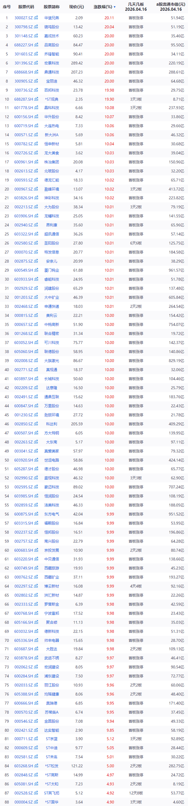 连板个股