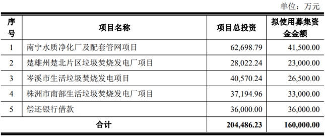 “岑溪市生活垃圾焚烧发电项目”拟投资4.06亿元,使用募集资金2.65亿元,建设一座500吨/日的垃圾焚烧发电厂,并配套开展填埋场存量垃圾综合治理。项目将有效解决岑溪市垃圾处理能力即将见顶的紧迫问题,避免“垃圾围城”风险。