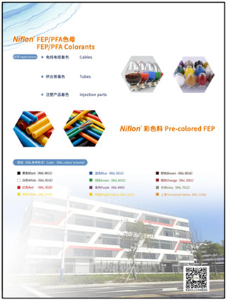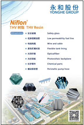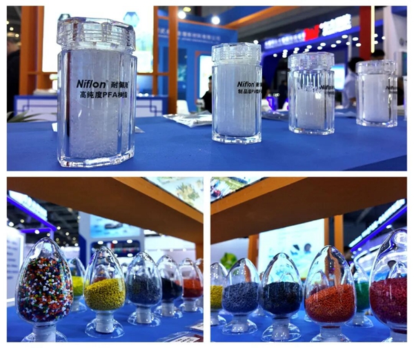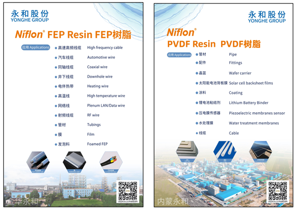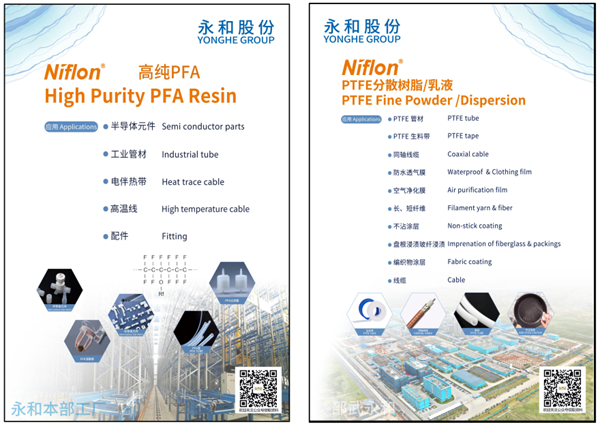 本次展会,永和股份集中展示了耐氟隆(Niflon)全系列高性能氟聚合物产品,涵盖高纯PFA、FEP、PTFE、PVDF、THV等多款明星产品。产品广泛应用于新能源、半导体、航空航天、电子通讯、医疗健康等战略性新兴产业,为高端制造迭代升级提供关键核心基础材料。
