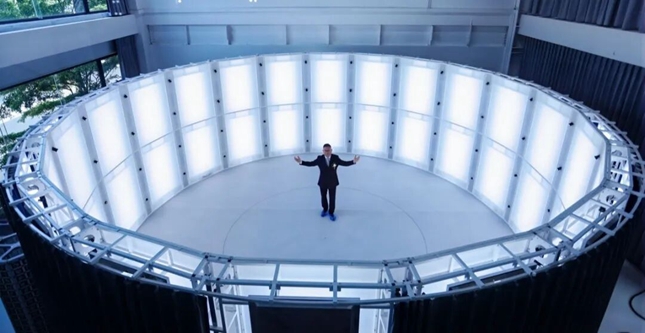 “灵视空间”拥有10米宽的专业影棚空间及直径约5米有效拍摄区,80台4K相机组成的环形阵列实现360度无死角数据采集。系统内置自动化色彩校准和光照统一技术,能够精准还原发丝、皮肤纹理、服饰褶皱等细节。