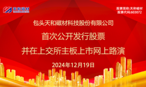 中国上市公司网讯 12月18日,包头天和磁材科技股份有限公司(以下简称“天和磁材”或公司)发布了网上路演公告,公司将于2024年12月19日(T-1日,周四)9:00-12:00进...
